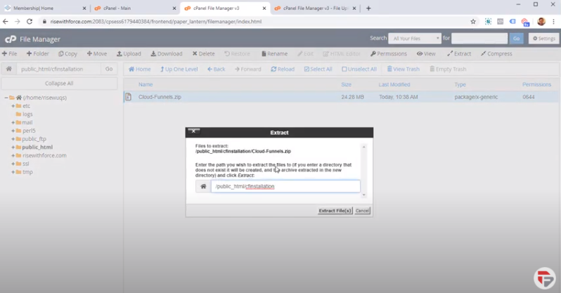 One important thing to do is we need to give cloudfunnels the right permission inside the cPanel.