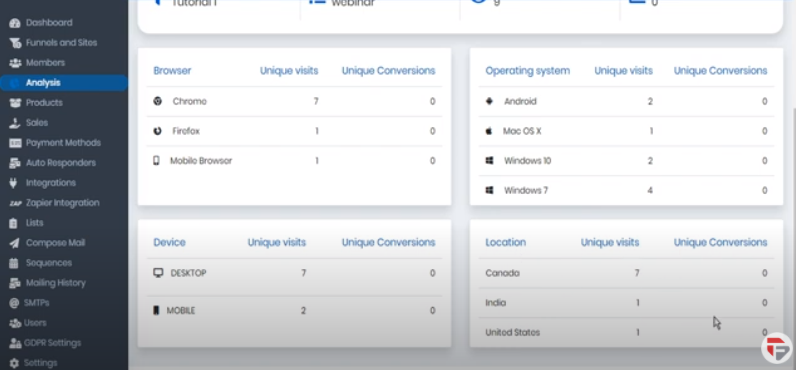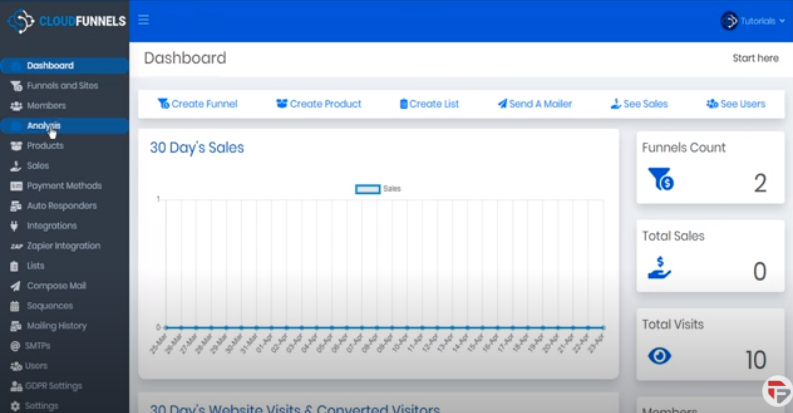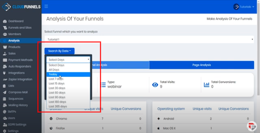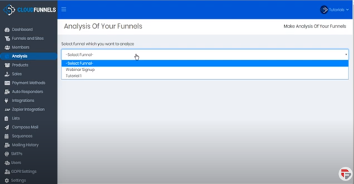To use the built-in analysis from Cloudfunnels, go to the sidebar and click analysis.