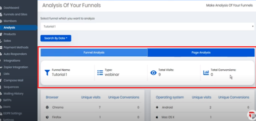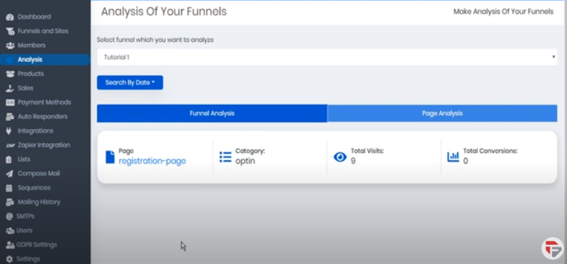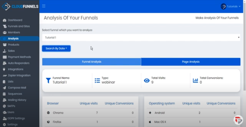 I will select here tutorial one, this provides you with an overall analysis of either the funnel or individual pages.