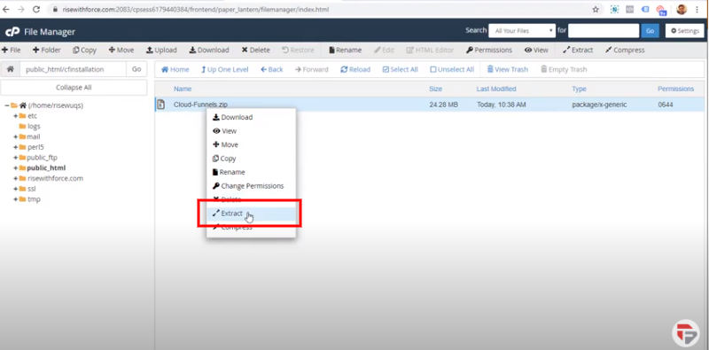 So here is cloudfunnels, this is the zip file that we have downloaded.