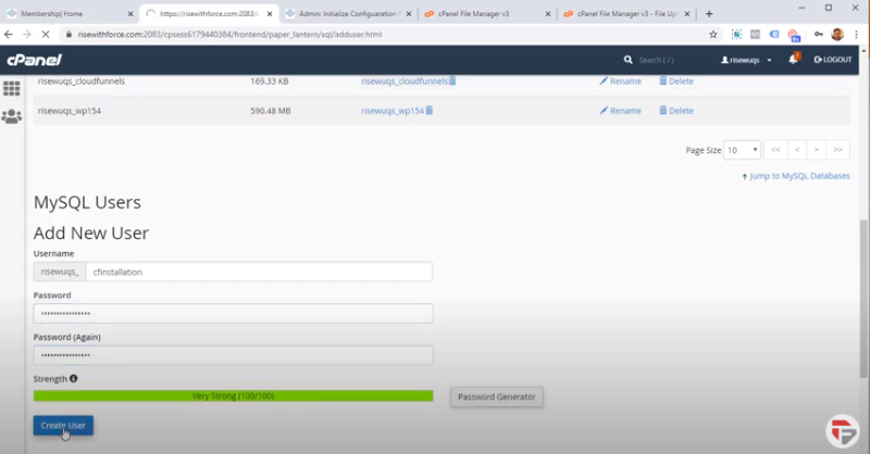 I am using here the same name i.e cf installations make sure your password strength must be at least 30. Once done click create user