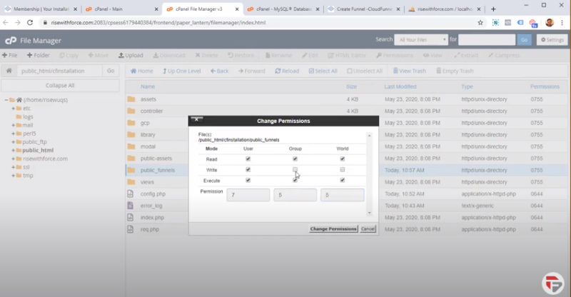 One important thing to do is we need to give cloudfunnels the right permission inside the cPanel.